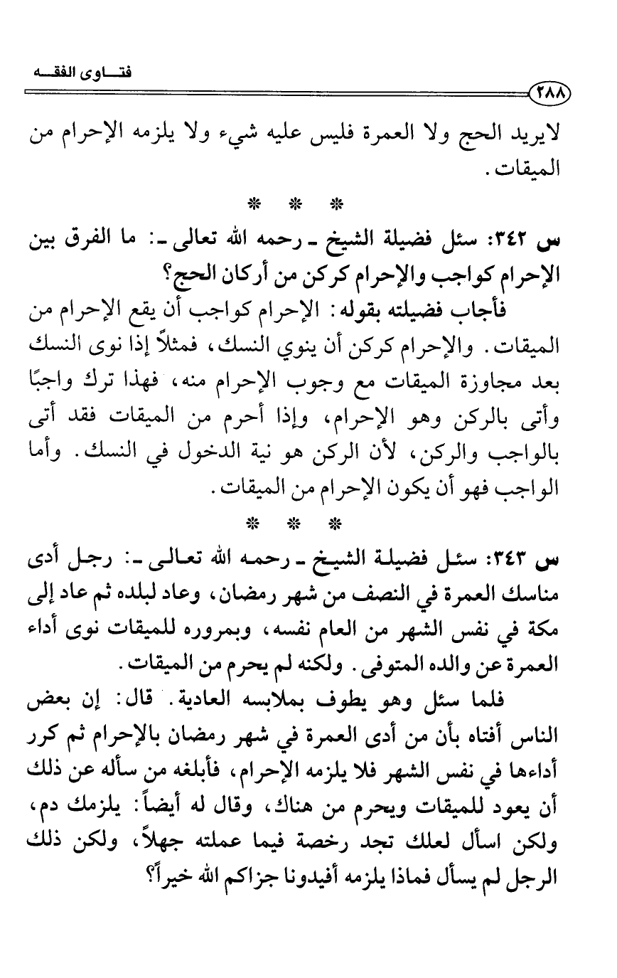 س 342: سئل فضيلة الشيخ- رحمه الله تعالى-: ما الفرق بين الإحرام كواجب والإحرام كركن من أركان الحج؟