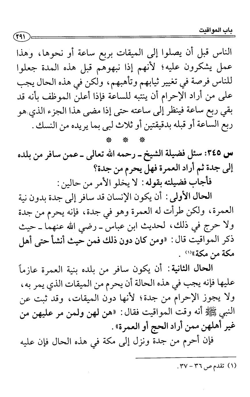 س 345: سئل فضيلة الشيخ- رحمه الله تعالى- عمن سافر من بلده إلى جدة ثم أراد العمرة فهل يحرم من جدة؟