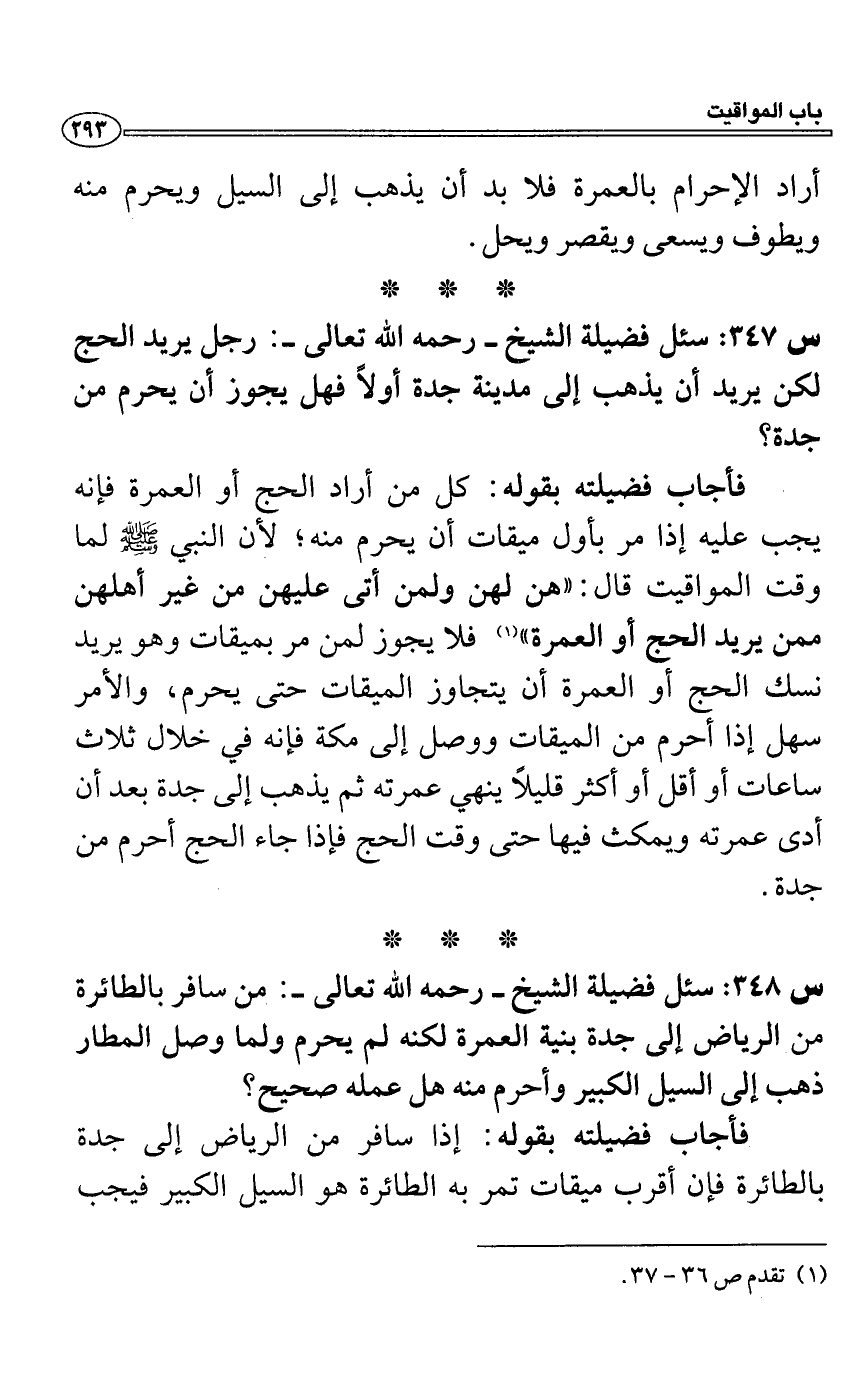 س 347: سئل فضيلة الشيخ- رحمه الله تعالى-: رجل يريد الحج لكن يريد أن يذهب إلى مدينة جدة أولاً فهل يجوز أن يحرم من جدة؟