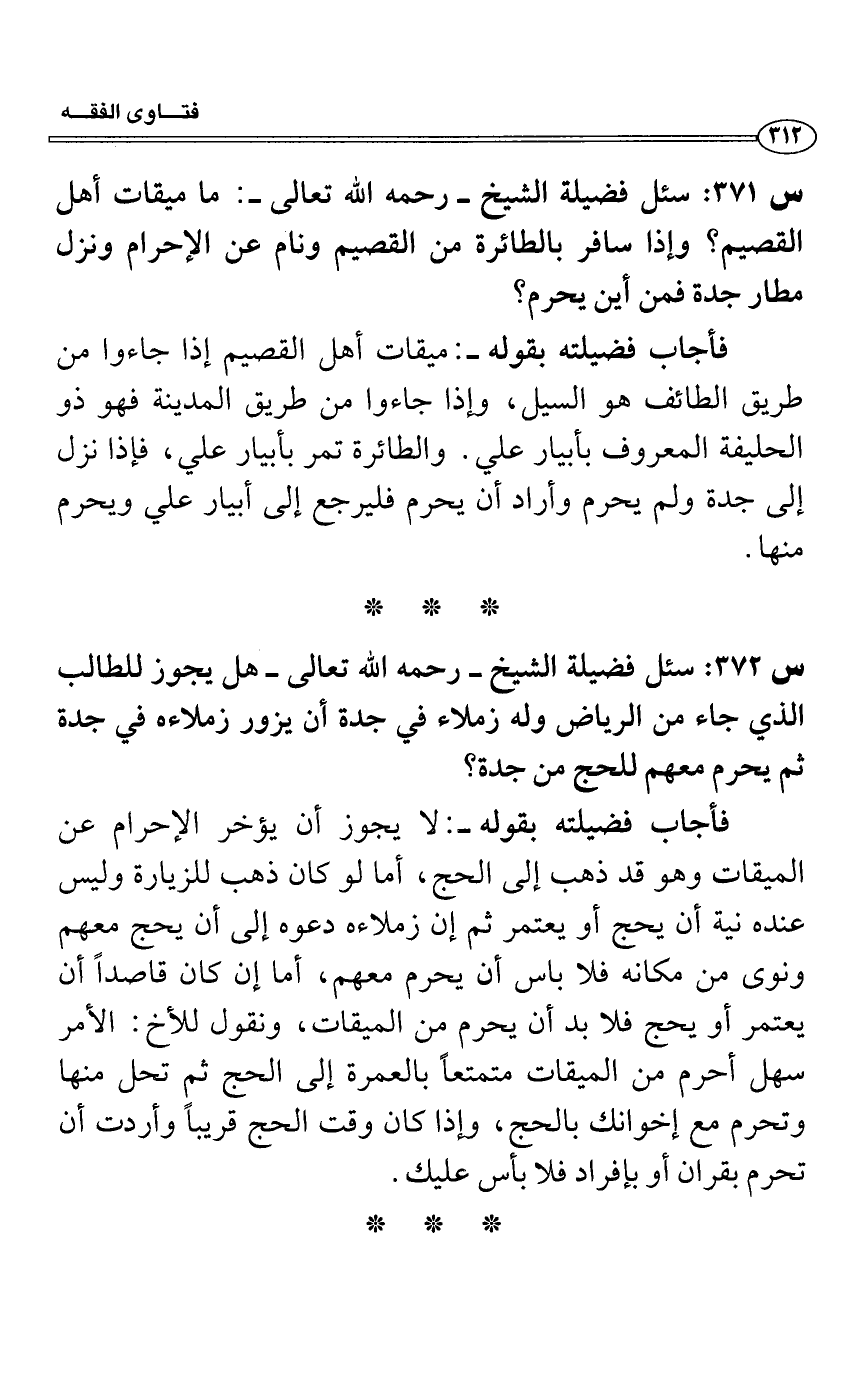 س 372: سئل فضيلة الشيخ- رحمه الله تعالى- هل يجوز للطالب الذي جاء من الرياض وله زملاء في جدة أن يزور زملاءه في جدة ثم يحرم معهم للحج من جدة؟