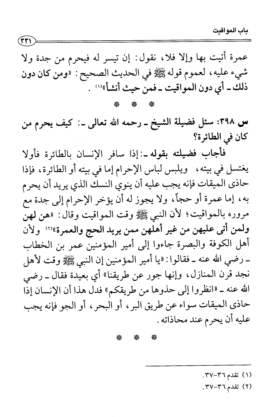 س 398: سئل فضيلة الشيخ- رحمه الله تعالى-: كيف يحرم من كان في الطائرة؟