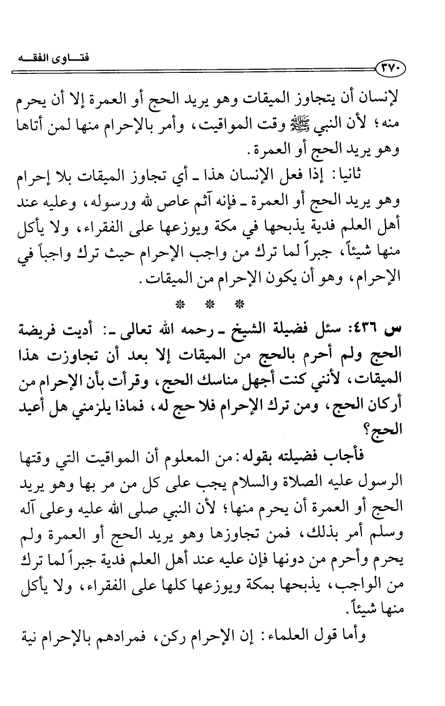 س 436: سئل فضيلة الشيخ- رحمه الله تعالى-: أديت فريضة الحج ولم أحرم بالحج من الميقات إلا بعد أن تجاوزت هذا الميقات، لأنني كنت أجهل مناسك الحج، وقرأت بأن الإحرام من أركان الحج، ومن ترك الإحرام فلا حج له، فماذا يلزمني هل أعيد الحج؟