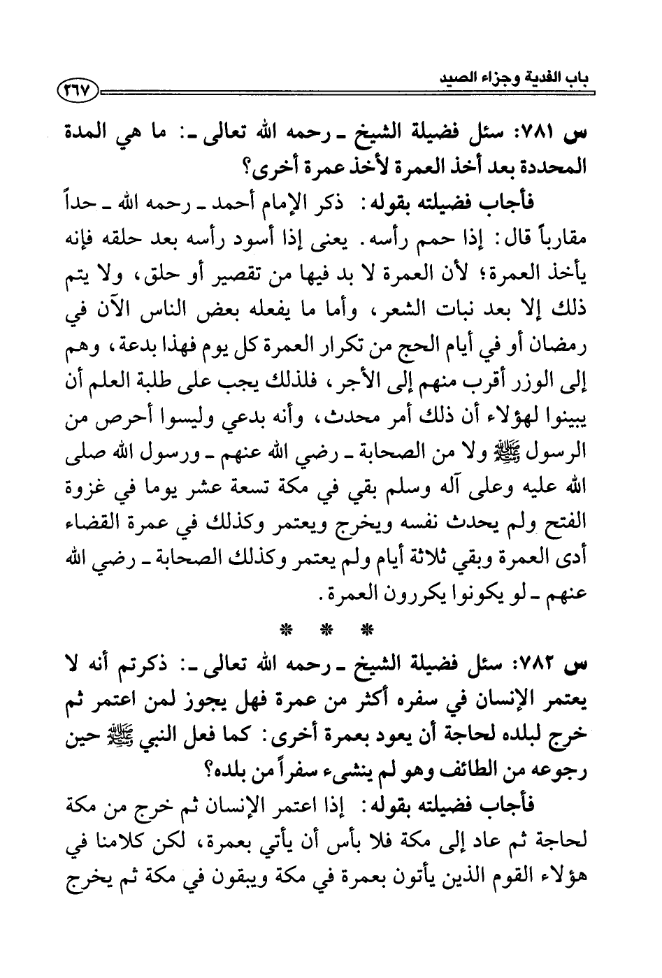 س 781: سئل فضيلة الشيخ- رحمه الله تعالى-: ما هي المدة المحددة بعد أخذ العمرة لأخذ عمرة أخرى؟