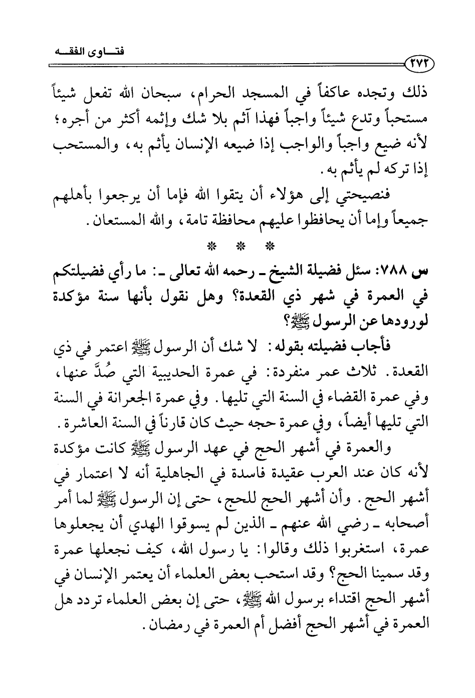 س 788: سئل فضيلة الشيخ- رحمه الله تعالى-: ما رأي فضيلتكم في العمرة في شهر ذي القعدة؟ وهل نقول بأنها سنة مؤكدة لورودها عن الرسول - صلى الله عليه وسلم -؟