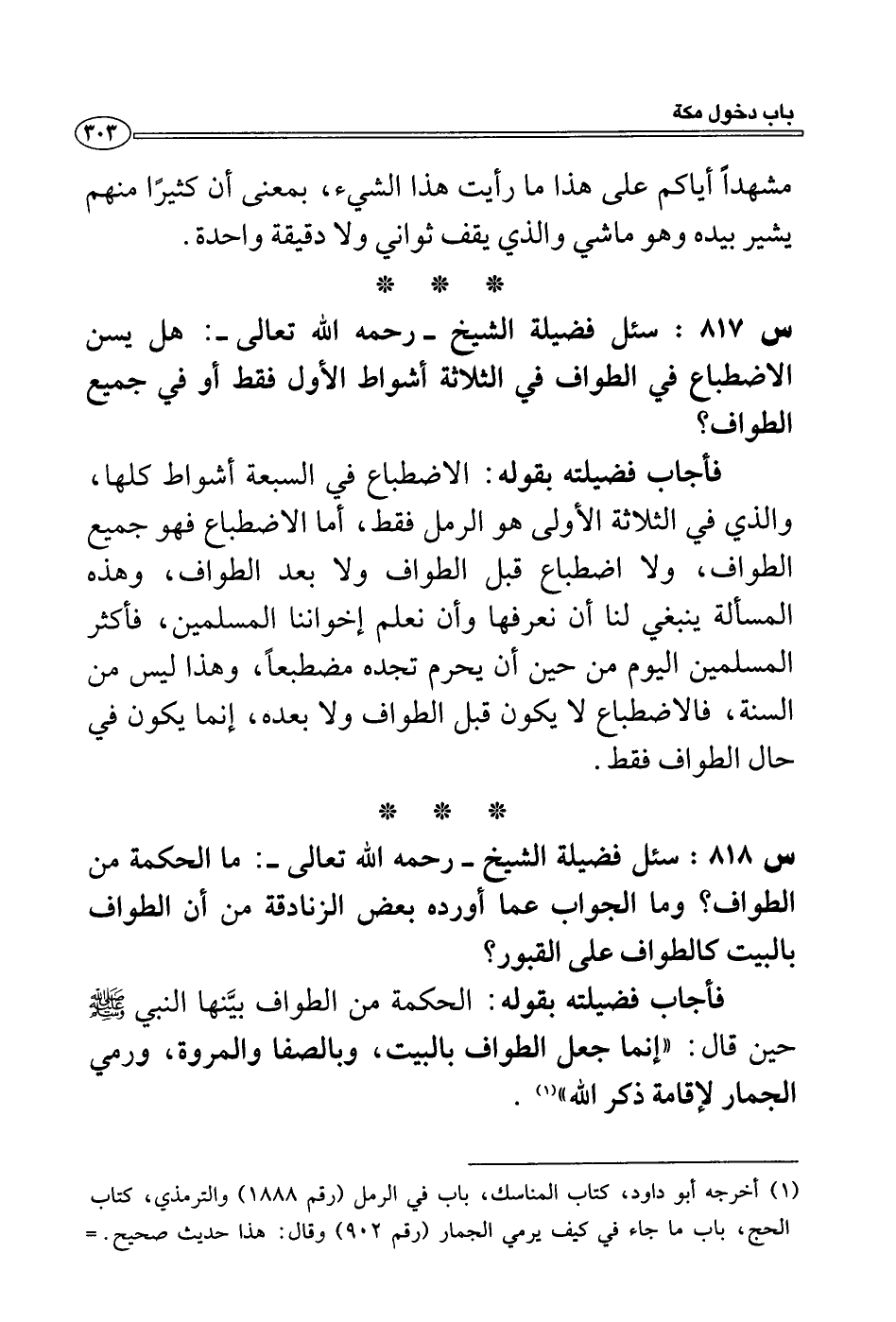 (1) أخرجه أبو داود، كتاب المناسك، باب في الرمل (رقم 1888) والترمذي، كتاب الحج، باب ما جاء في كيف يرمي الجمار (رقم 902) وقال: هذا حديث صحيح.=