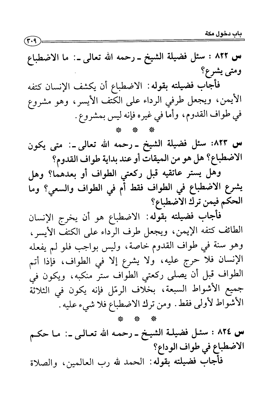 س 822: سئل فضيلة الشيخ- رحمه الله تعالى-: ما الاضطباع ومتى يشرع؟