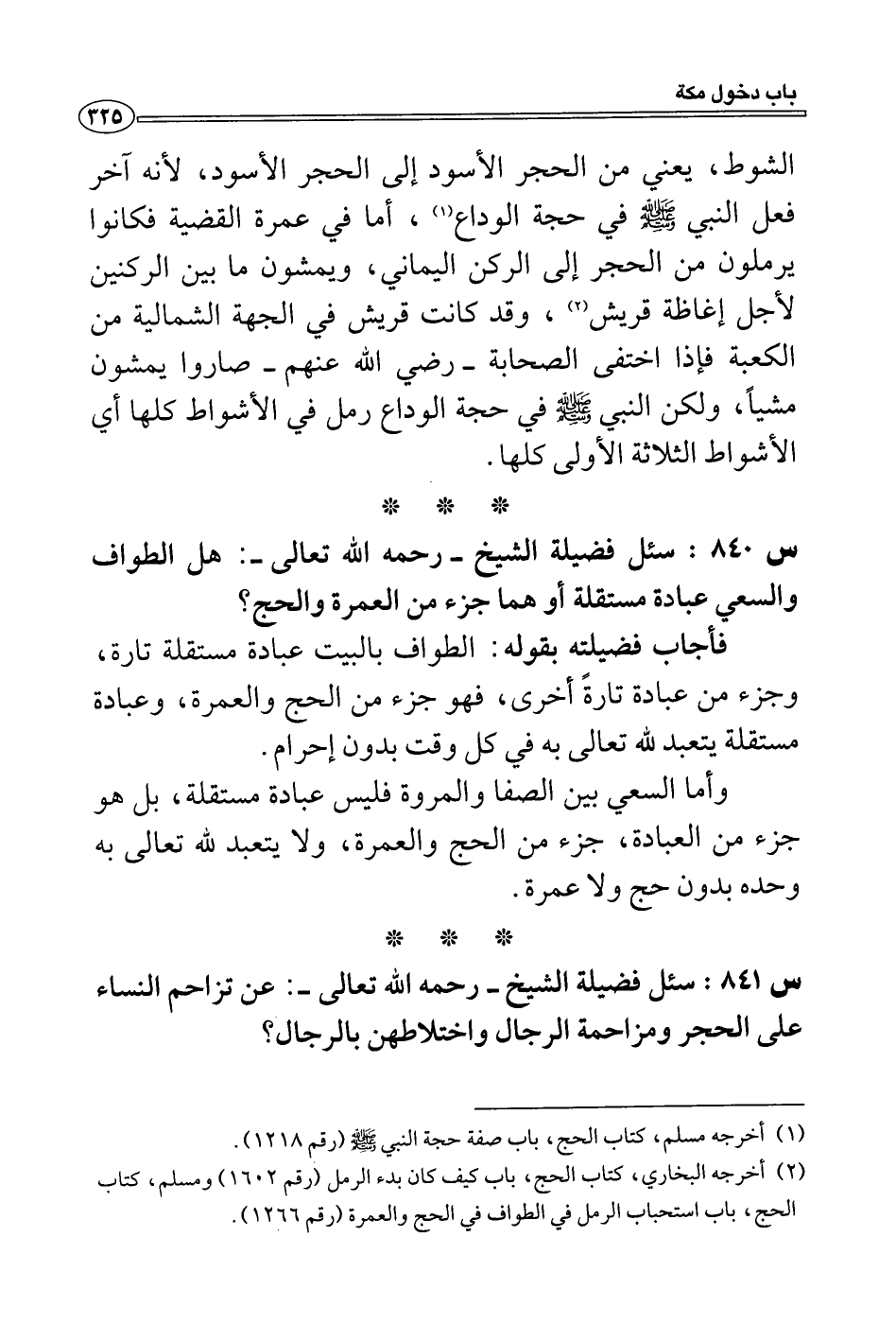 س 841: سئل فضيلة الشيخ- رحمه الله تعالى-: عن تزاحم النساء علي الحجر ومزاحمة الرجال واختلاطهن بالرجال؟