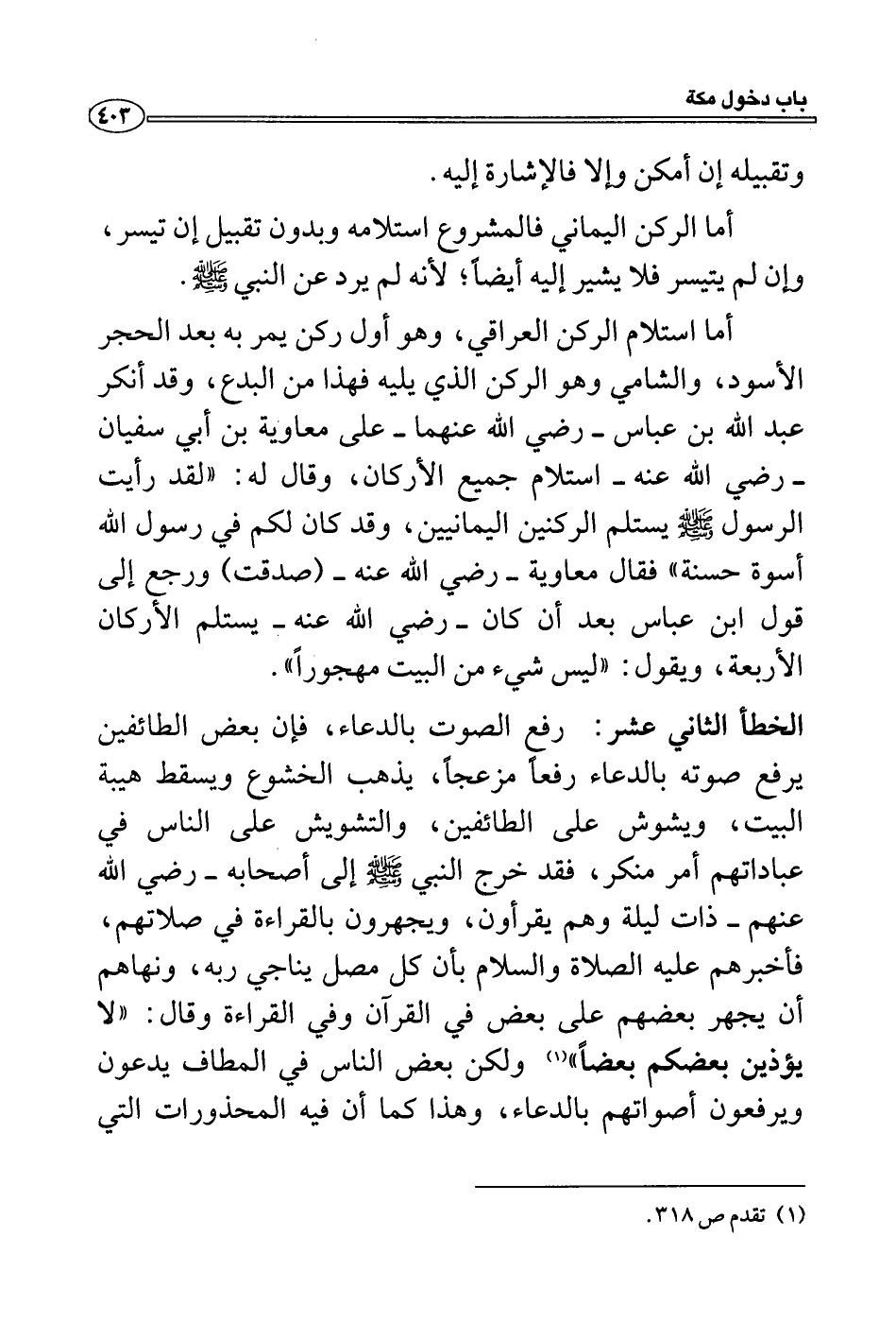 أن يجهر بعضهم على بعض في القرآن وفي القراءة وقال: "لا يؤذين بعضكم بعضاً" (1) ولكن بعض الناس في المطاف يدعون ويرفعون أصواتهم بالدعاء، وهذا كما أن فيه المحذورات التي