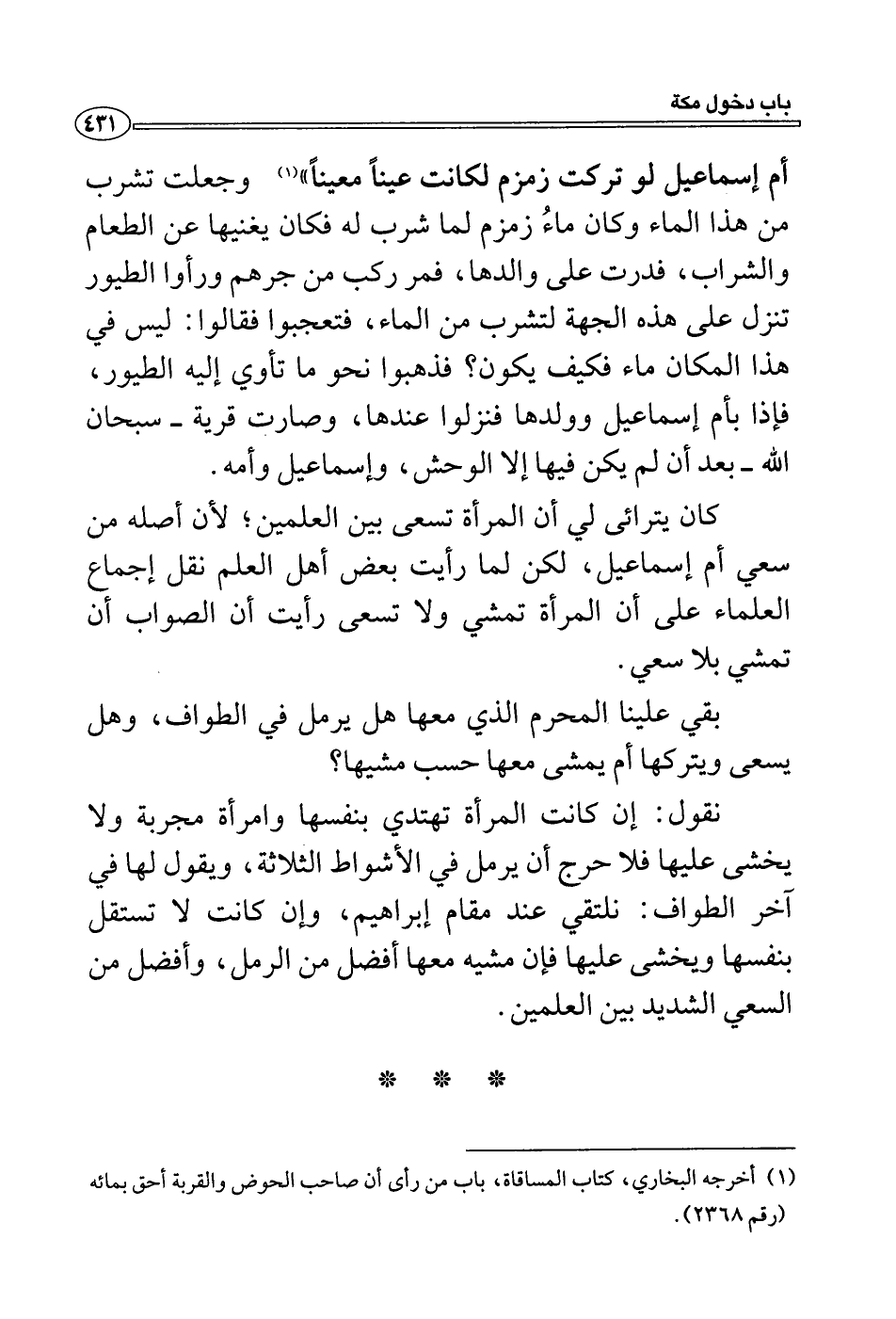(1) أخرجه البخاري، كتاب المساقاة، باب من رأى أن صاحب الحوض والقربة أحق بمائه (رقم 2368) .