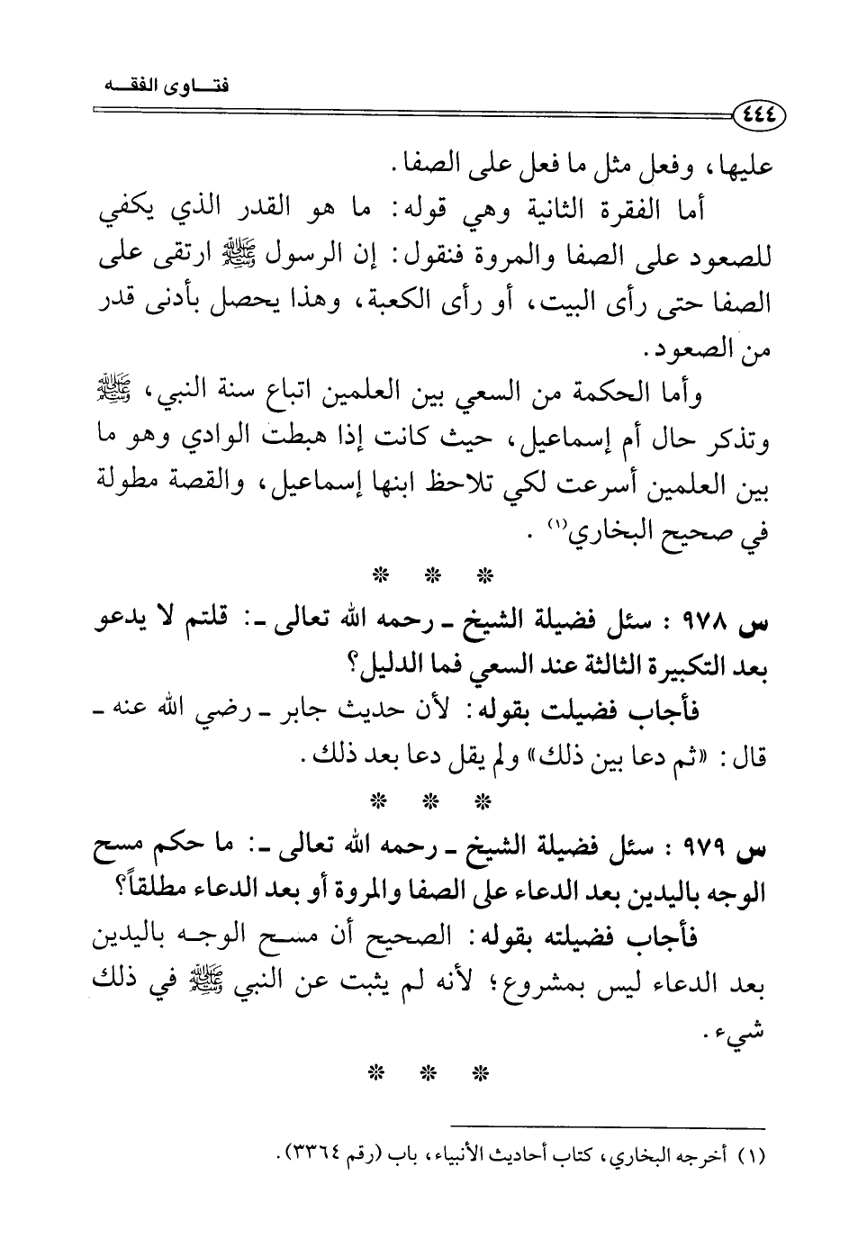 س 979: سئل فضيلة الشيخ- رحمه الله تعالى-: ما حكم مسح الوجه باليدين بعد الدعاء على الصفا والمروة أو بعد الدعاء مطلقاً؟