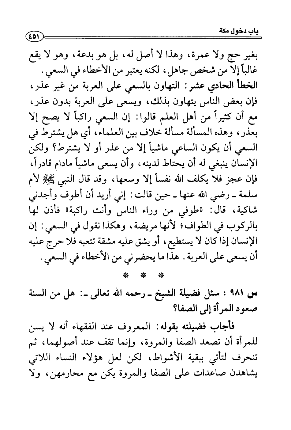س 981: سئل فضيلة الشيخ- رحمه الله تعالى-: هل من السنة صعود المرأة إلى الصفا؟