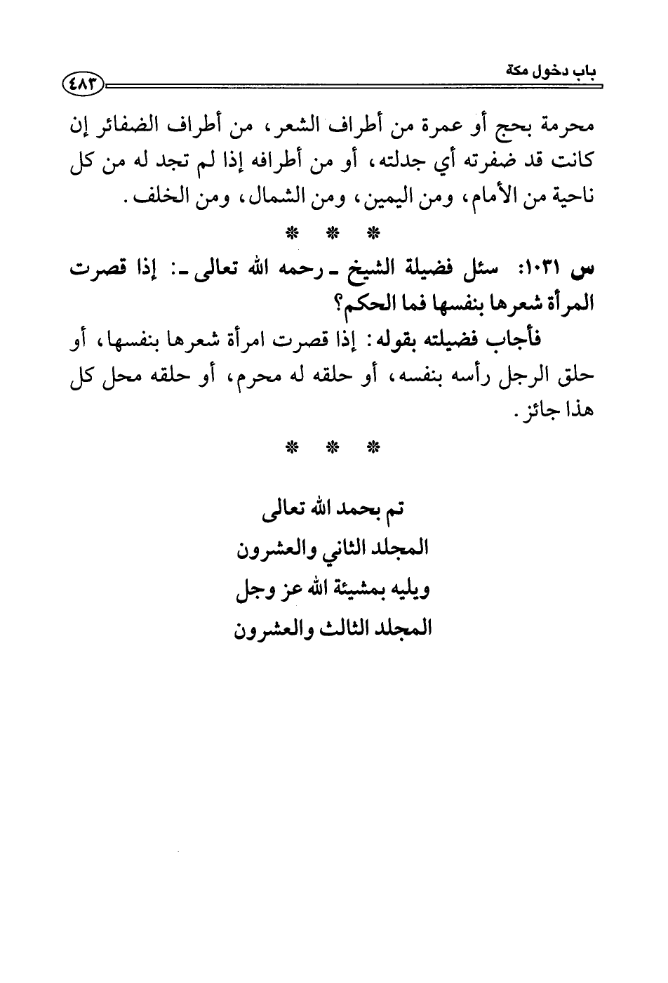 س 1031: سئل فضيلة الشيخ- رحمه الله تعالى-: إذا قصرت المرأة شعرها بنفسها فما الحكم؟