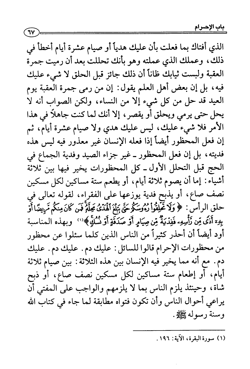 (1) سورة البقرة، الآية: 196.