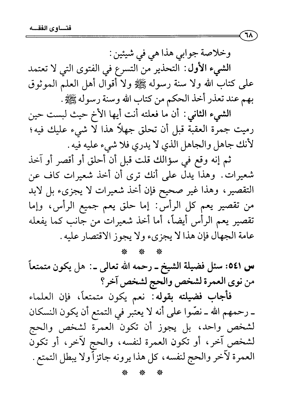 س 541: سئل فضيلة الشيخ- رحمه الله تعالى-: هل يكون متمتعاً من نوى العمرة لشخص والحج لشخص آخر؟