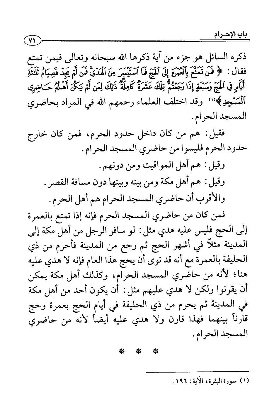 (1) سورة البقرة، الآية: 196.