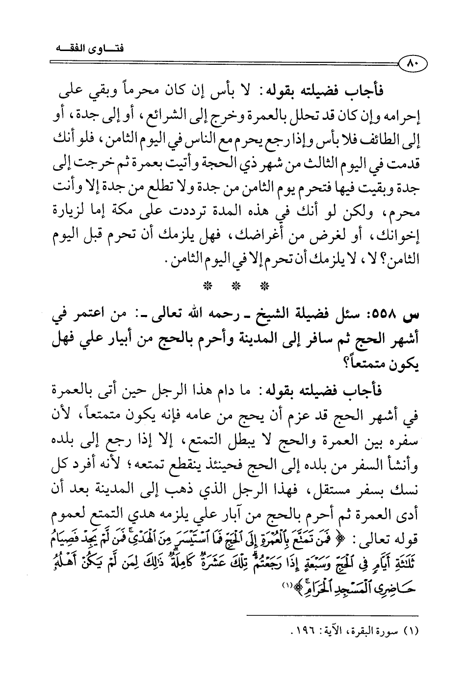(1) سورة البقرة، الآية: 196.