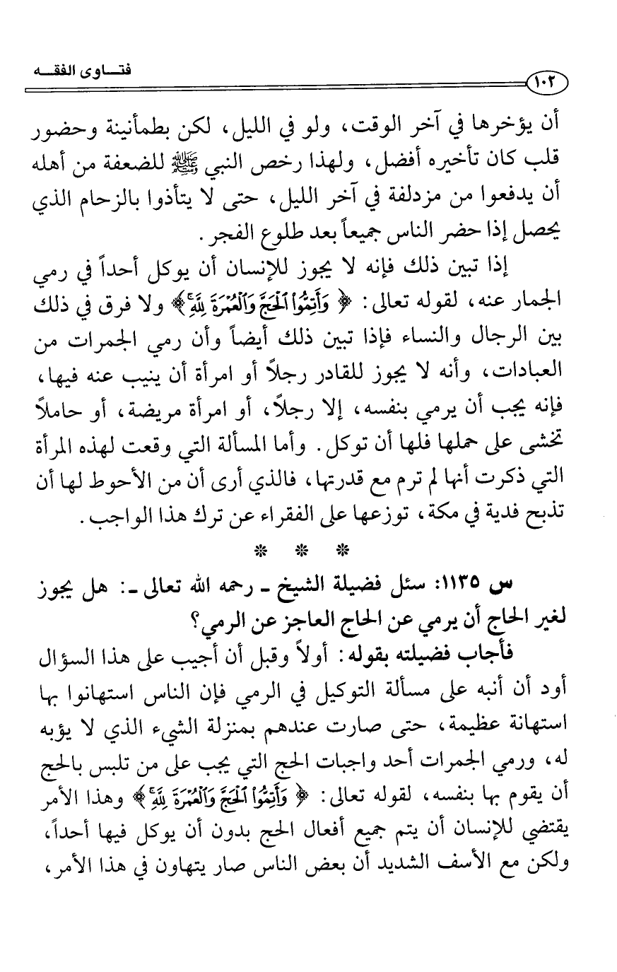 س1135: سئل فضيلة الشيخ- رحمه الله تعالى-: هل يجوز لغير الحاج أن يرمي عن الحاج العاجز عن الرمي؟