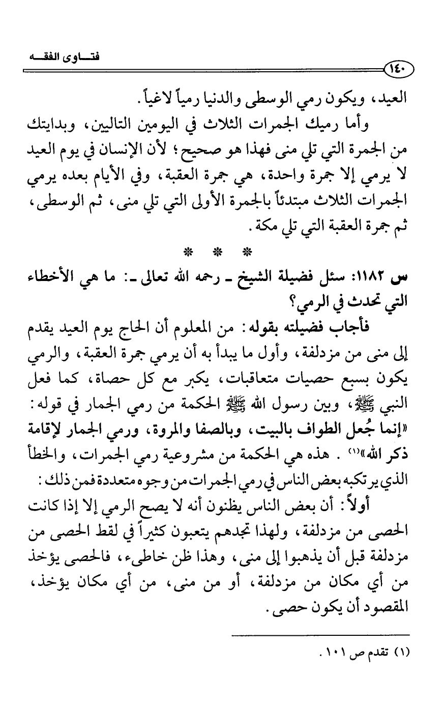 س1182: سئل فضيلة الشيخ- رحمه الله تعالى-: ما هي الأخطاء التي تحدث في الرمي؟