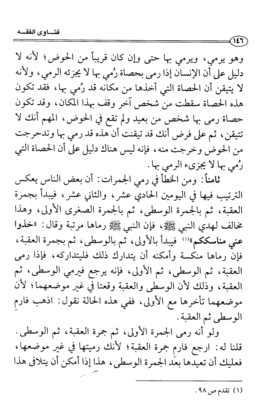 العقبة، وذلك لأن الوسطى والعقبة وقعتا في غير موضعهما، لأن موضعهما تأخرها مع الأولى، ففي هذه الحالة نقول: اذهب فارمِ الوسطى ثم العقبة.