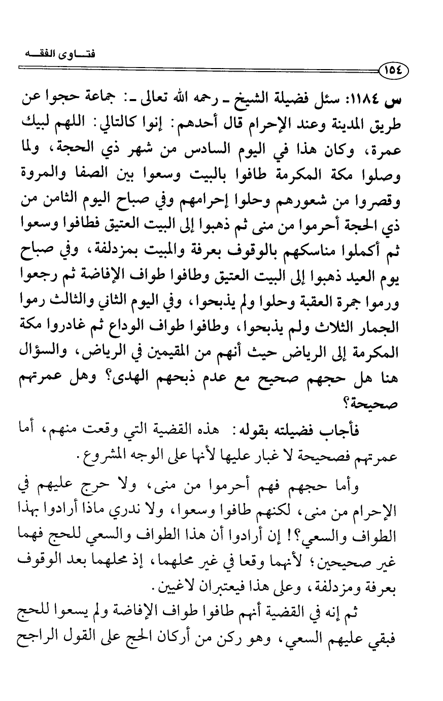 س1184: سئل فضيلة الشيخ- رحمه الله تعالى-: جماعة حجوا عن طريق المدينة وعند الإحرام قال أحدهم: إنوا كالتالي: اللهم لبيك عمرة، وكان هذا في اليوم السادس من شهر ذي الحجة، ولما