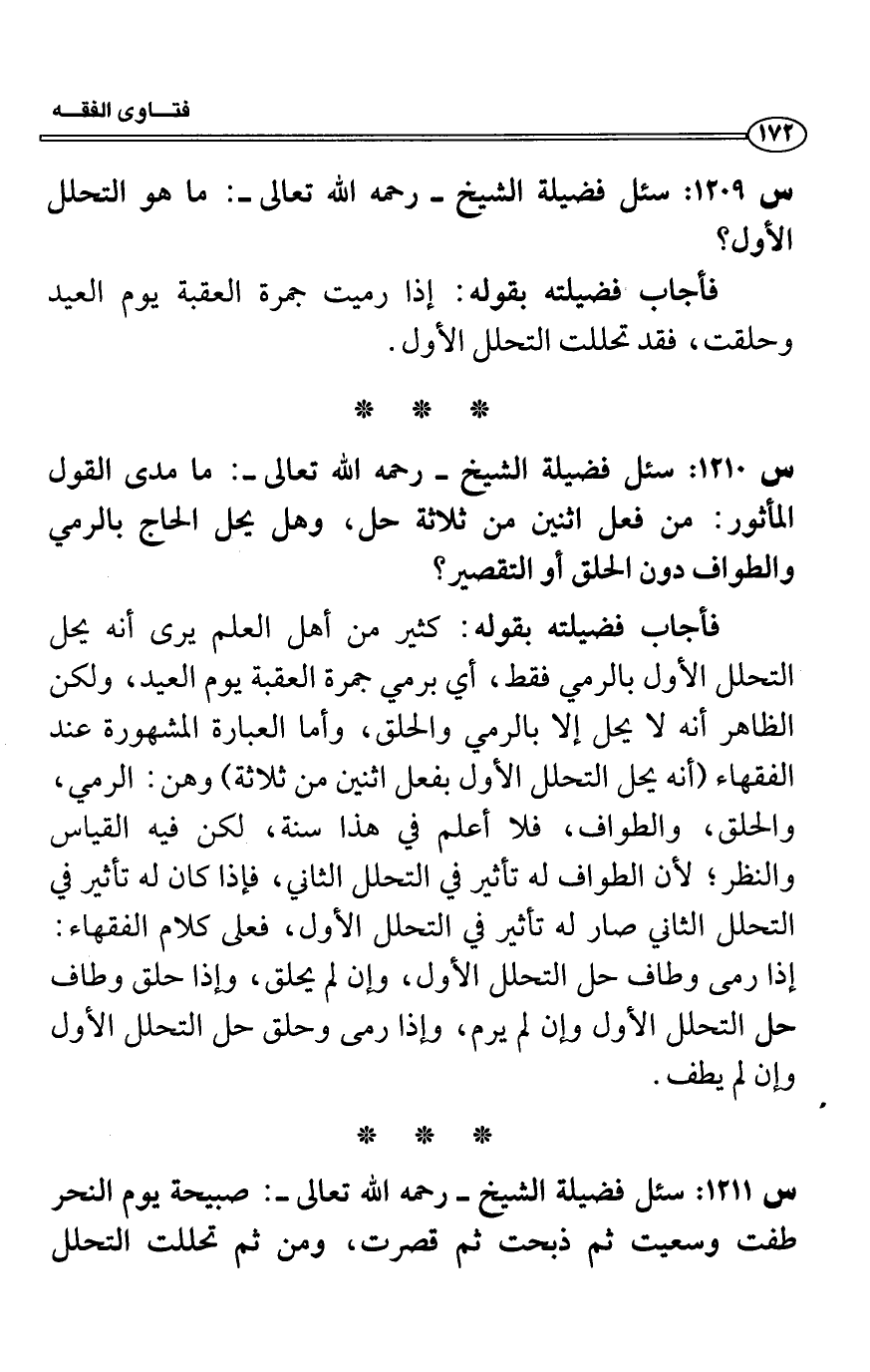 س1209: سئل فضيلة الشيخ- رحمه الله تعالى-: ما هو التحلل الأول؟