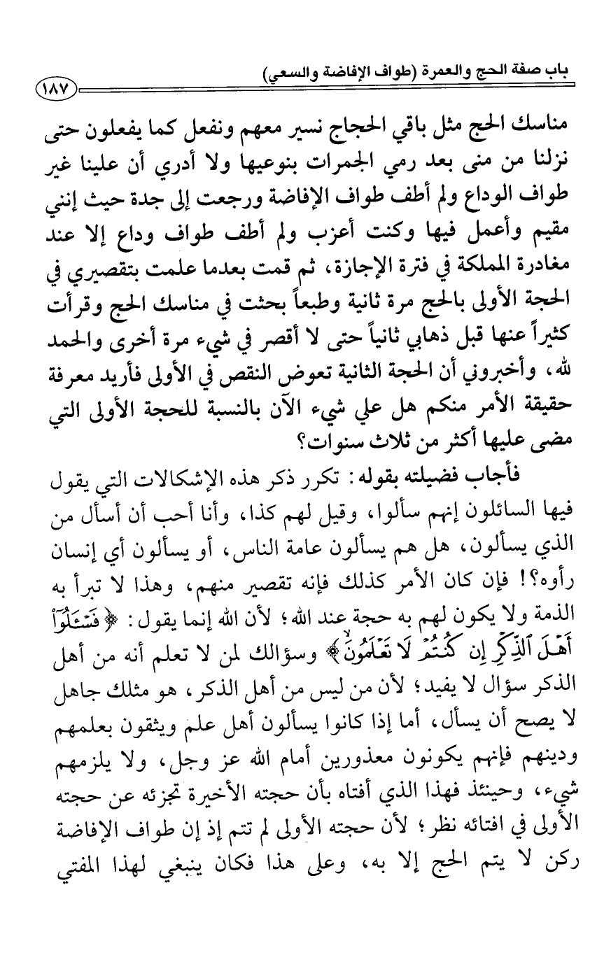 الذكر سؤال لا يفيد؛ لأن من ليس من أهل الذكر، هو مثلك جاهل لا يصح أن يسأل، أما إذا كانوا يسألون أهل علم ويثقون بعلمهم ودينهم فإنهم يكونون معذورين أمام الله عز وجل، ولا يلزمهم شيء، وحينئذ فهذا الذي أفتاه بأن حجته الأخيرة تجزئه عن حجته الأولى في افتائه نظر؛ لأن حجته الأولى لم تتم إذ إن طواف الإفاضة ركن لا يمَم الحج إلا به، وعلى هذا فكان ينبغي لهذا المفتي