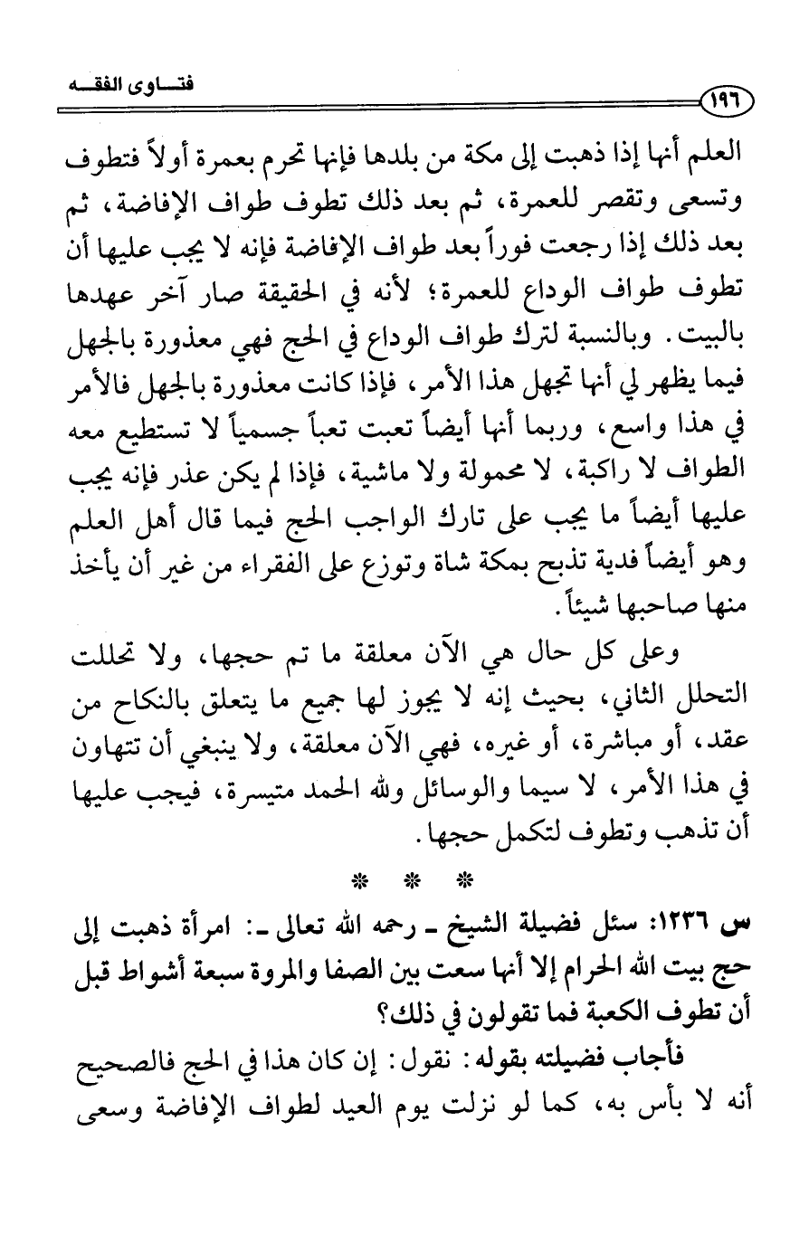 فأجاب فضيلته بقوله: نقول: إن كان هذا في الحج فالصحيح أنه لا بأس به، كما لو نزلت يوم العيد لطواف الإفاضة وسعى