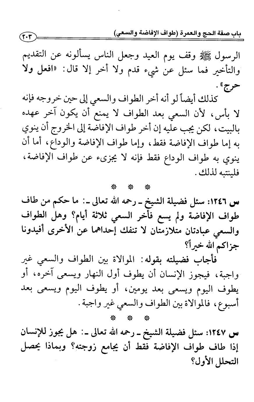 الرسول - صلى الله عليه وسلم - وقف يوم العيد وجعل الناس يسألونه عن التقديم والتأخير فما سئل عن شيء قدم ولا أخر إلا قال: "افعل ولا حرج".
