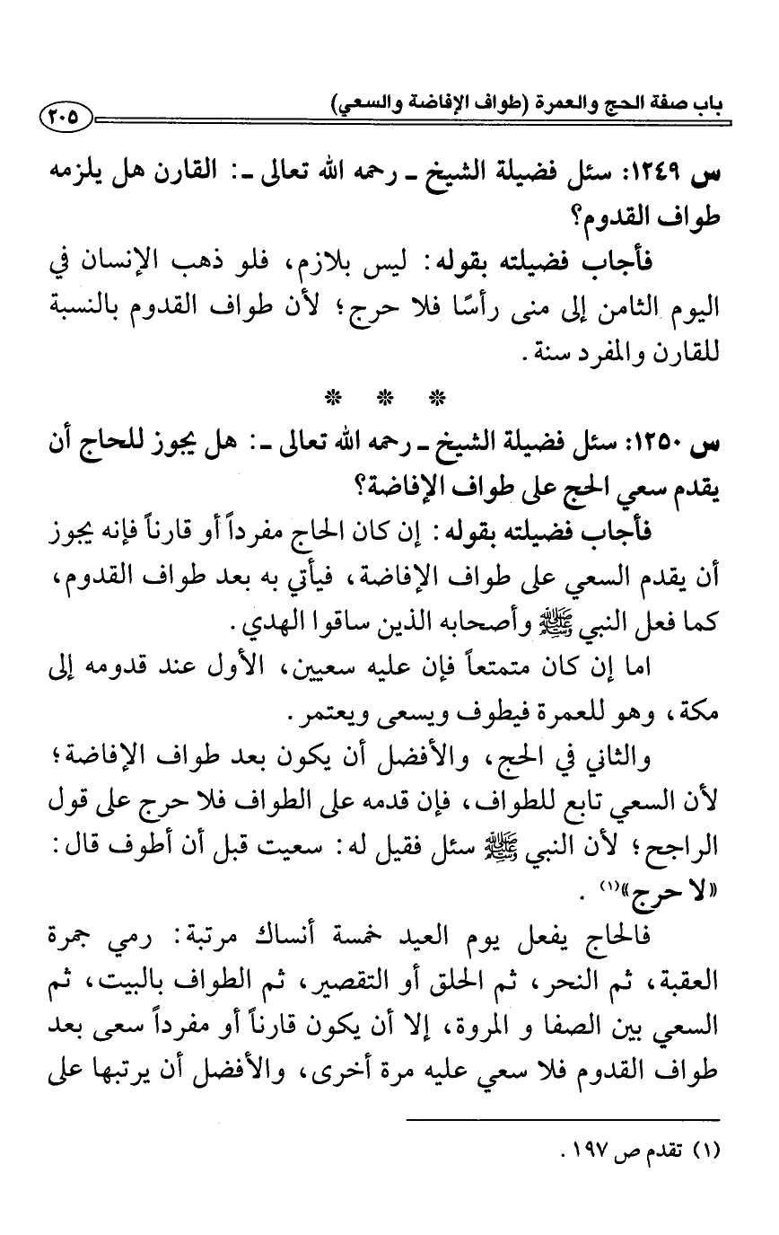 س1249: سئل فضيلة الشيخ- رحمه الله تعالى-: القارن هل يلزمه طواف القدوم؟