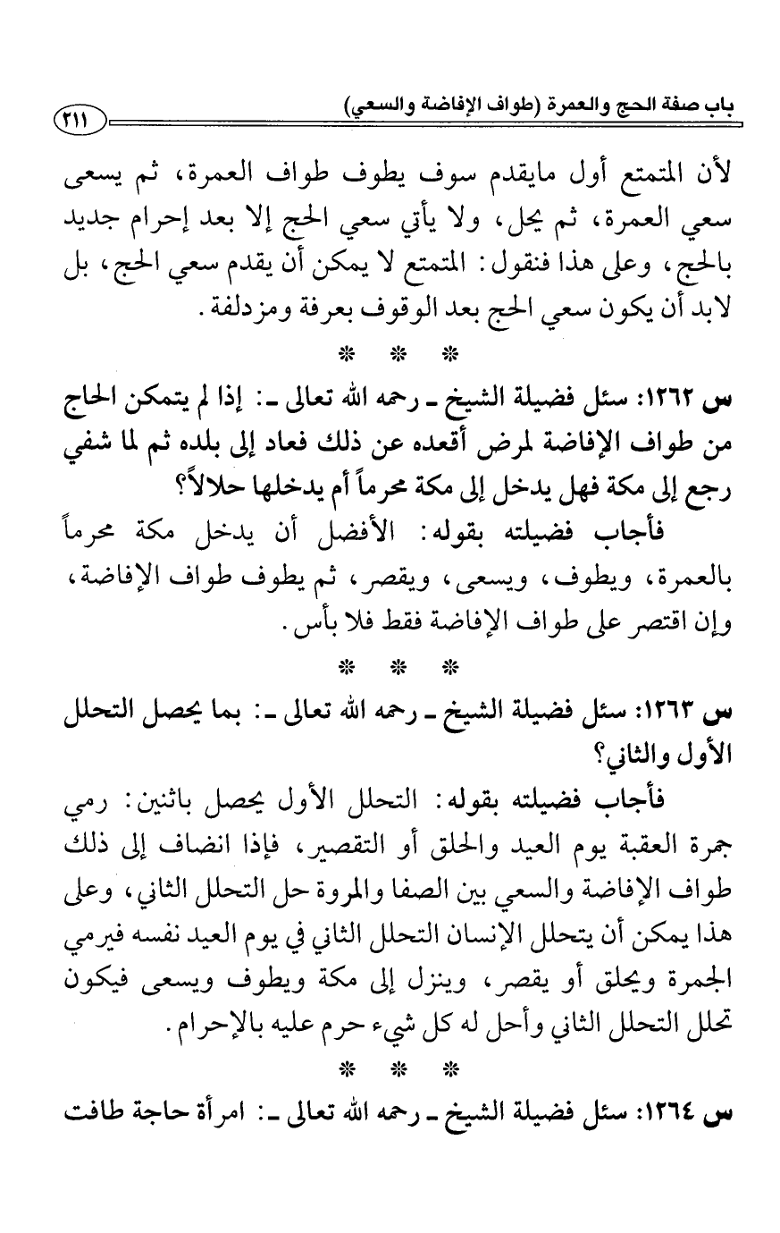س1264: سئل فضيلة الشيخ- رحمه الله تعالى-: امرأة حاجة طافت