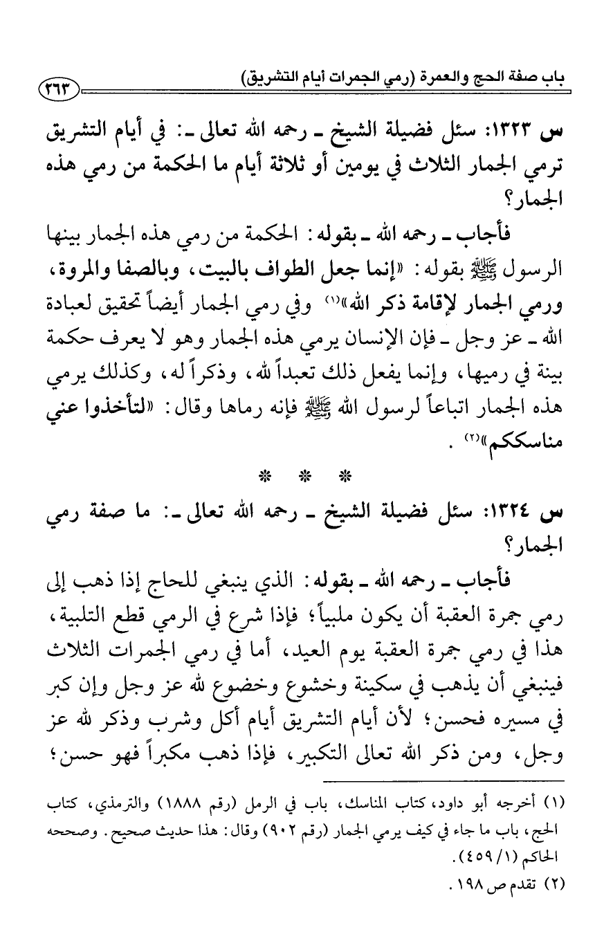 س1324: سئل فضيلة الشيخ- رحمه الله تعالى-: ما صفة رمي الجمار؟