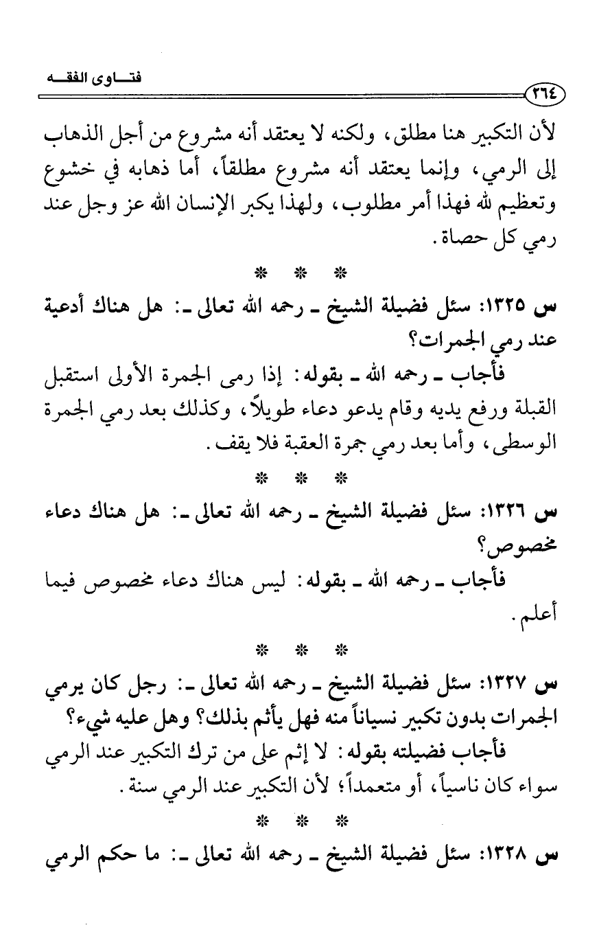 س1325: سئل فضيلة الشيخ- رحمه الله تعالى-: هل هناك أدعية عند رمي الجمرات؟