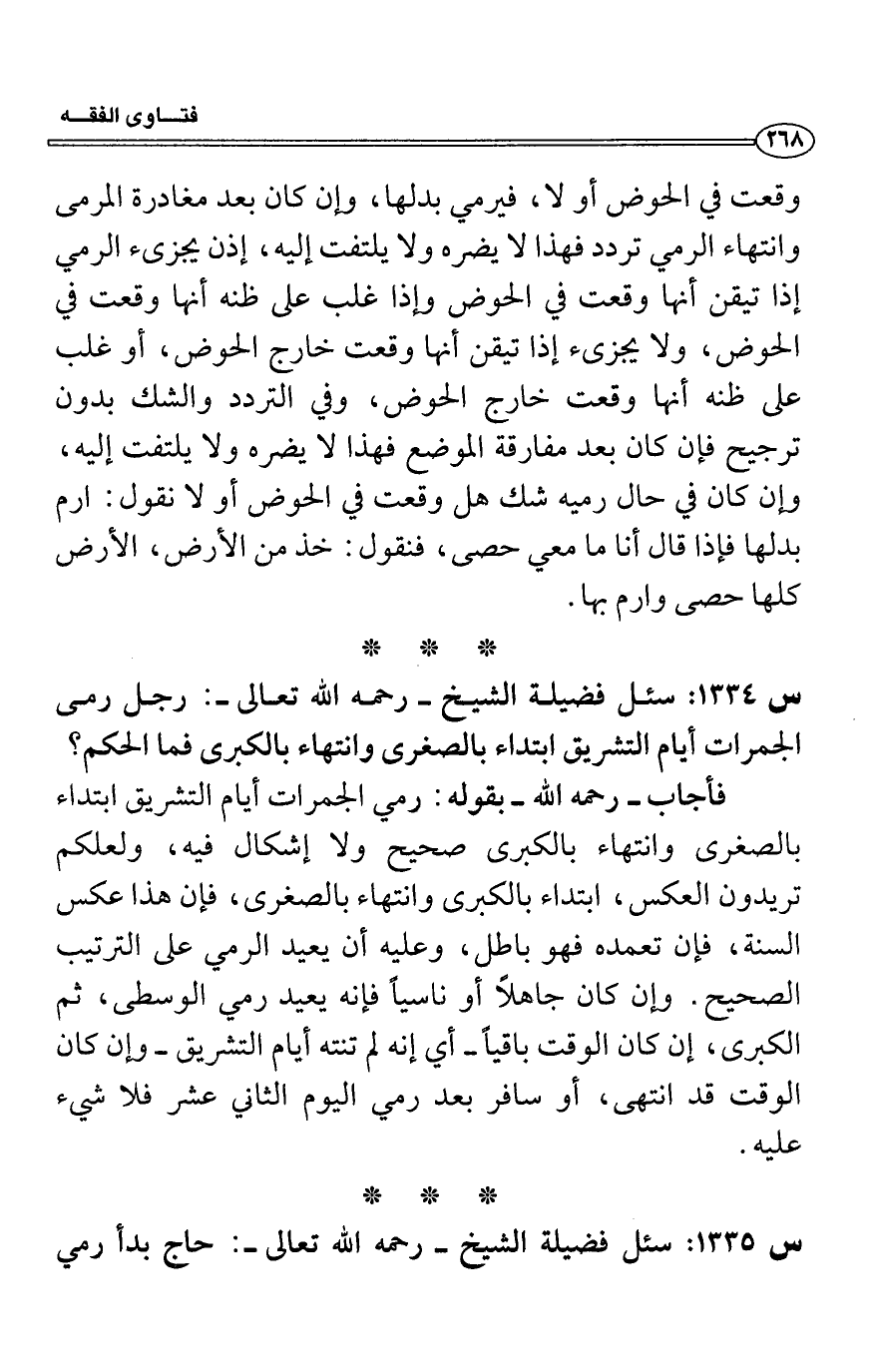 س1335: سئل فضيلة الشيخ- رحمه الله تعالى-: حاج بدأ رمي