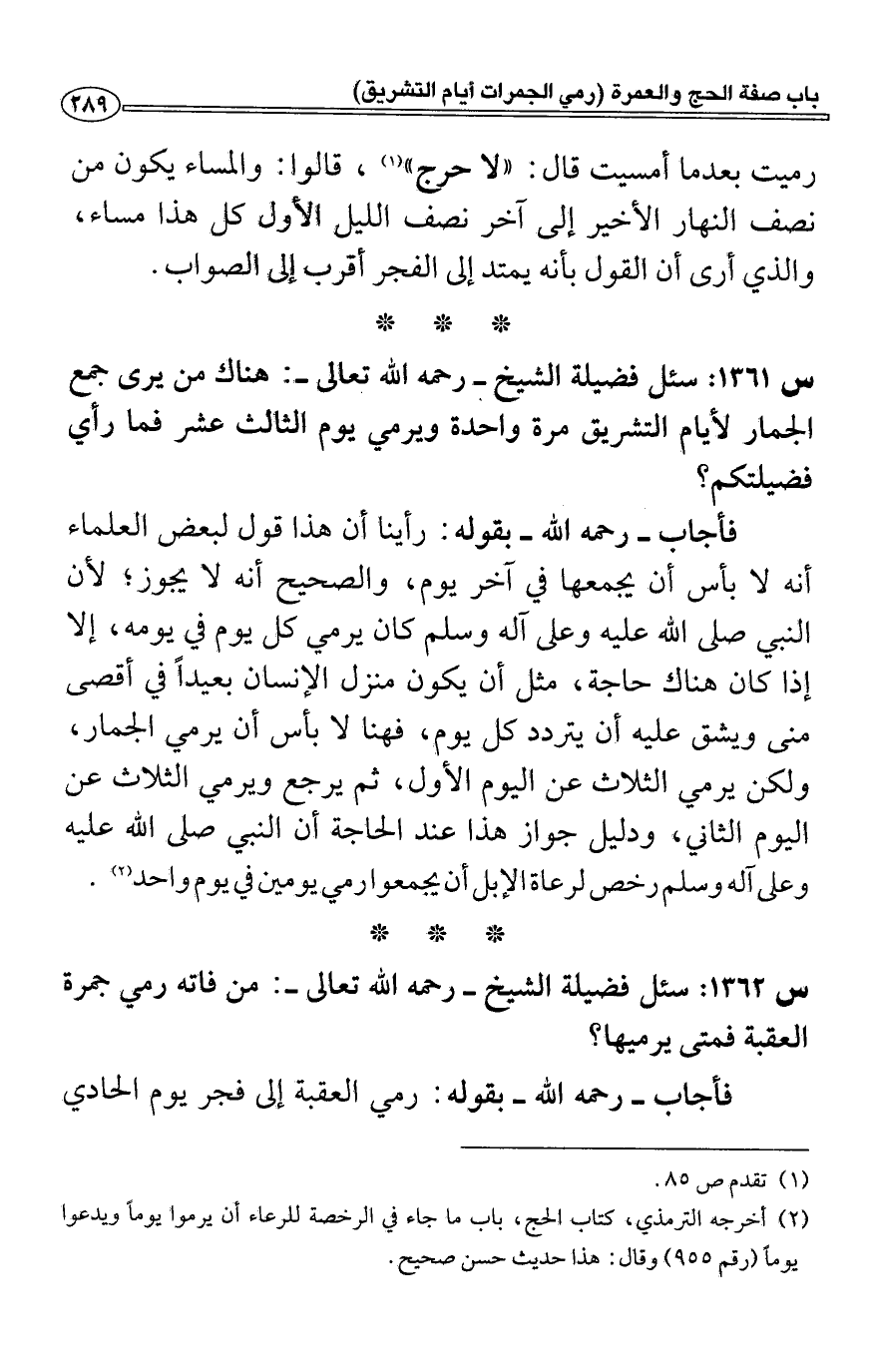 (2) أخرجه الترمذي، كتاب الحج، باب ما جاء في الرخصة للرعاء أن يرعوا يوما ويدعوا يوماً (رقم 955) وقال: هذا حديث حسن صحيح.