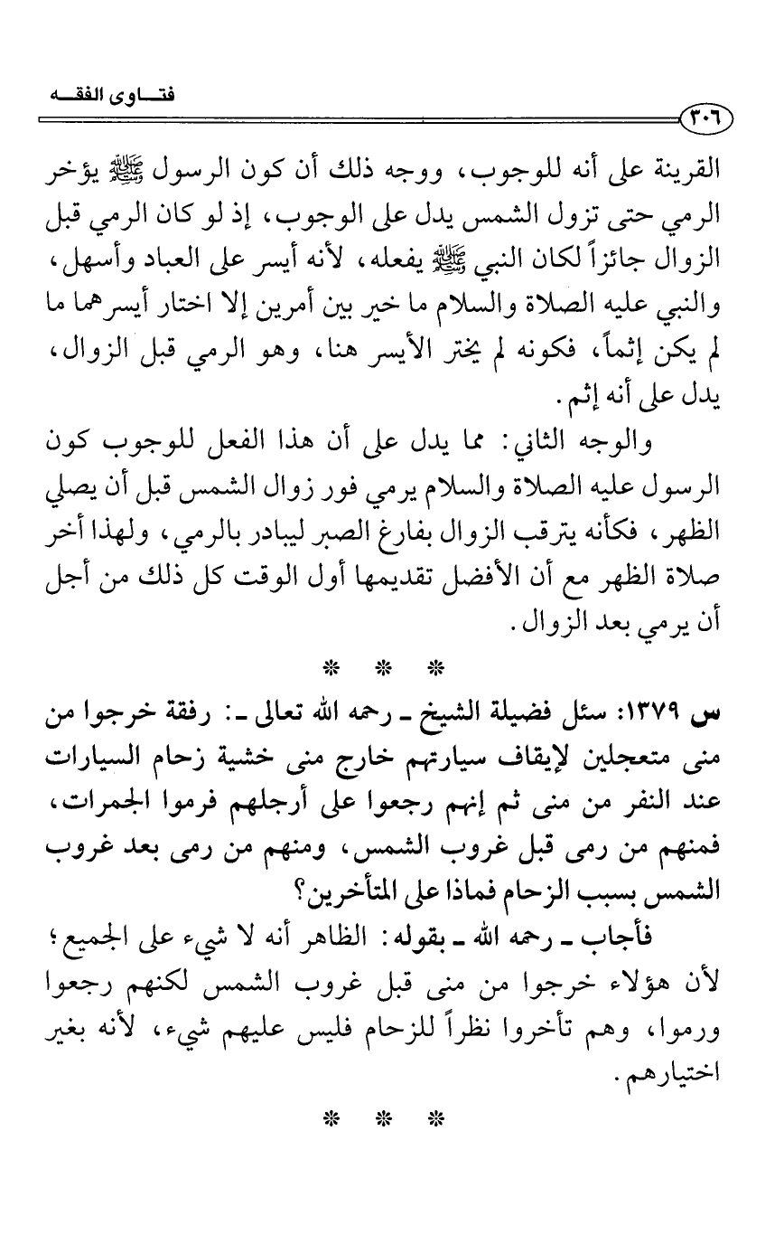 س1379: سئل فضيلة الشيخ- رحمه الله تعالى-: رفقة خرجوا من منى متعجلين لإيقاف سيارتهم خارج منى خشية زحام السيارات عند النفر من منى ثم إنهم رجعوا على أرجلهم فرموا الجمرات،