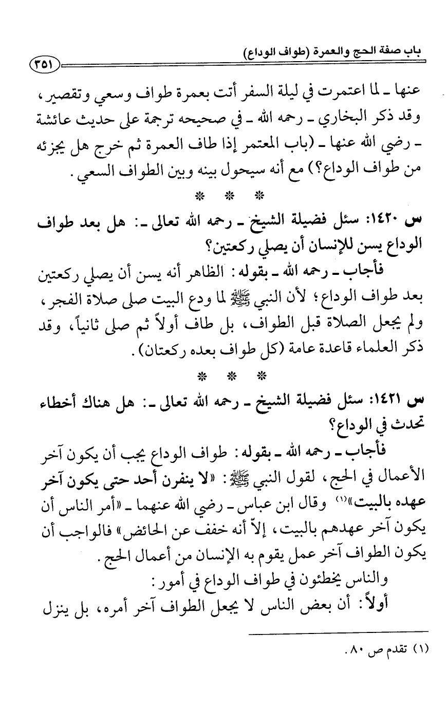 س1421: سئل فضيلة الشيخ- رحمه الله تعالى-: هل هناك أخطاء تحدث في الوداع؟