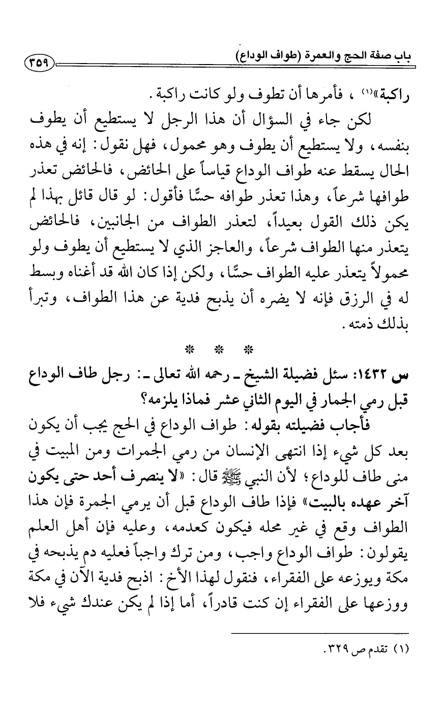 س1432: سئل فضيلة الشيخ- رحمه الله تعالى-: رجل طاف الوداع قبل رمي الجمار في اليوم الثاني عشر فماذا يلزمه؟