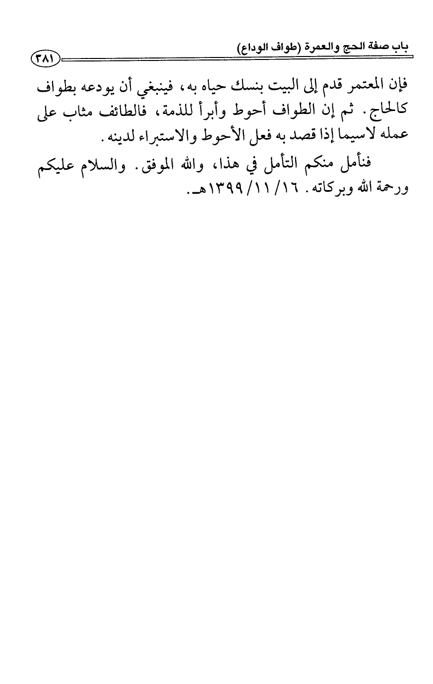 فنأمل منكم التأمل في هذا، والله الموفق. والسلام عليكم ورحمة الله وبركاته 11/16/1399هـ.