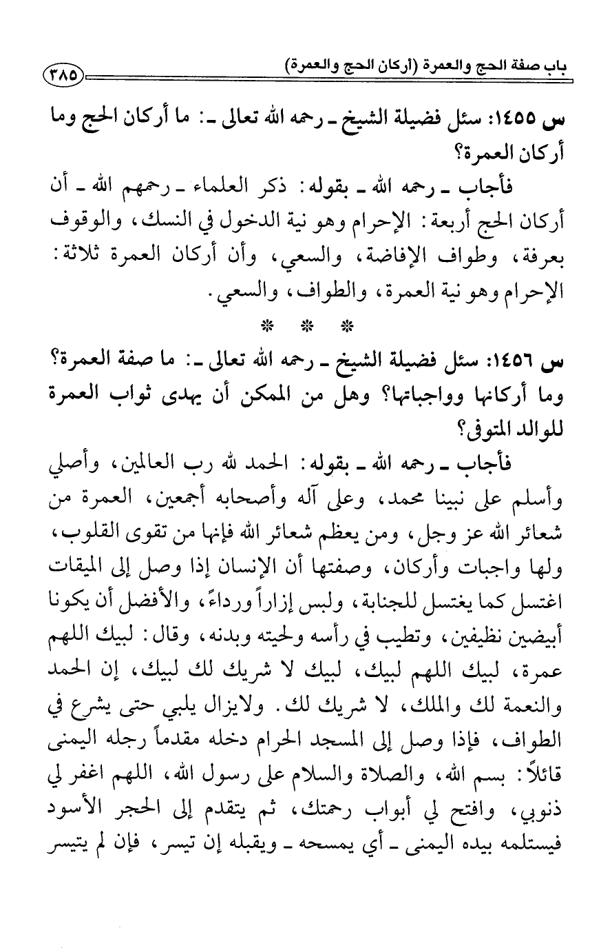 س1455: سئل فضيلة الشيخ- رحمه الله تعالى-: ما أركان الحج وما أركان العمرة؟