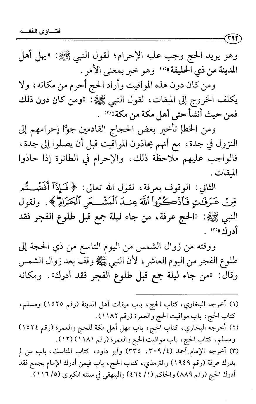 (3) أخرجه الإمام أحمد (4/309، 335) وأبو داود، كتاب المناسك، باب من لم يدرك عرفة (رقم 1949) والترمذي، كتاب الحج، باب فيمن أدرك الإمام بجمع فقد أدرك الحج (رقم 889) والحاكم (1/464) والبيهقي في سننه الكبرى (5/116) .