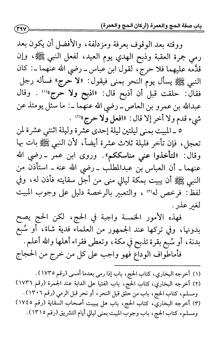 (3) أخرجه البخاري، كتاب الحج، باب هل يبيبت أصحاب السقاية (رقم 1745) ومسلم، كتاب الحج، باب وجوب المبيت بمنى ليالي أيام التشريق (رقم 1315) .