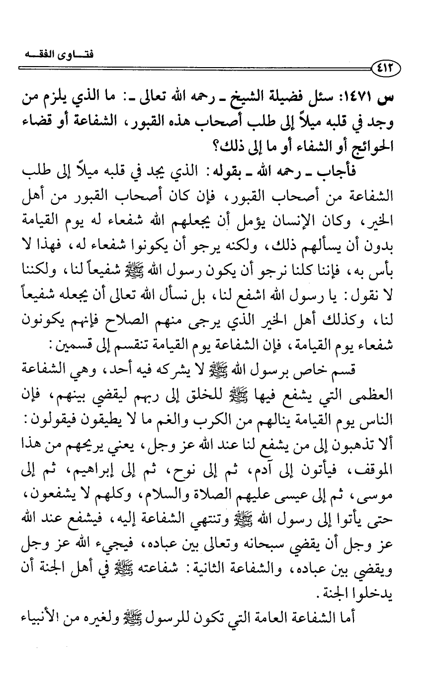 س1471: سئل فضيلة الشيخ- رحمه الله تعالى-: ما الذي يلزم من وجد في قلبه ميلاً إلى طلب أصحاب هذه القبور، الشفاعة أو قضاء الحوائج - صلى الله عليه وسلم - أو الشفاء أو ما إلى ذلك؟
