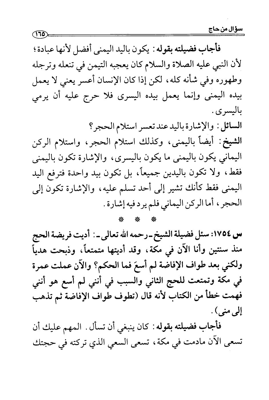 الشيخ: أيضاً باليمنى، وكذلك استلام الحجر، واستلام الركن اليماني يكون باليمنى ما يكون باليسرى، والإشارة تكون باليمنى فقط، ولا تكون باليدين جميعاً، بل تكون بيد واحدة فترفع اليد