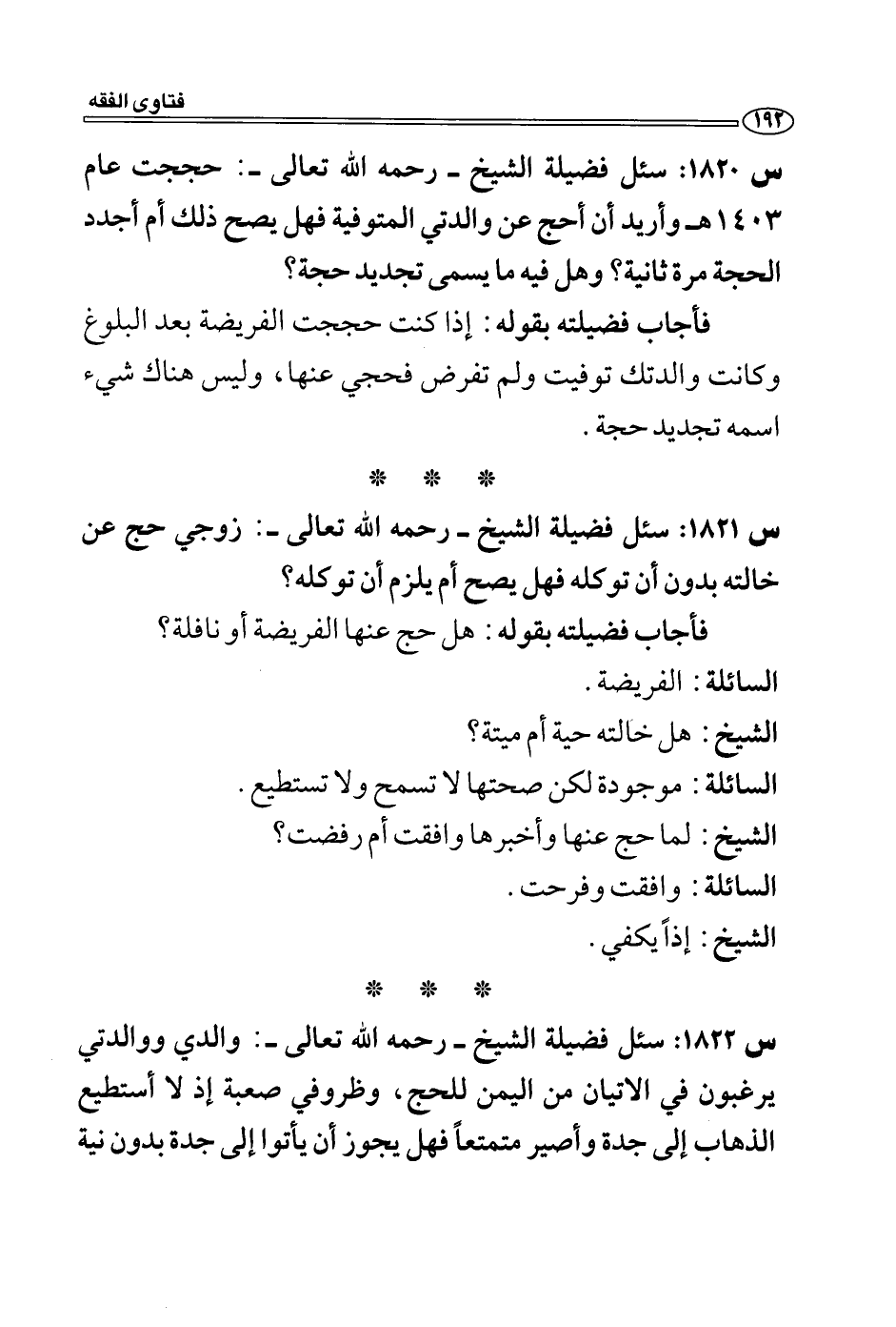 س 1820: سئل فضيلة الشيخ- رحمه الله تعالى-: حججت عام 1403 هـ وأريد أن أحج عن والدتي المتوفية فهل يصح ذلك أم أجدد الحجة مرة ثانية؟ وهل فيه ما يسمى تجديد حجة؟