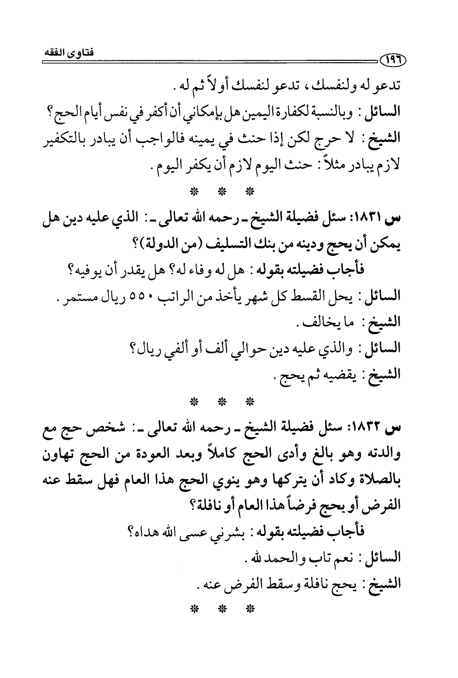 س 1831: سئل فضيلة الشيخ- رحمه الله تعالى-: الذي عليه دين هل يمكن أن يحج ودينه من بنك التسليف (من الدولة) ؟