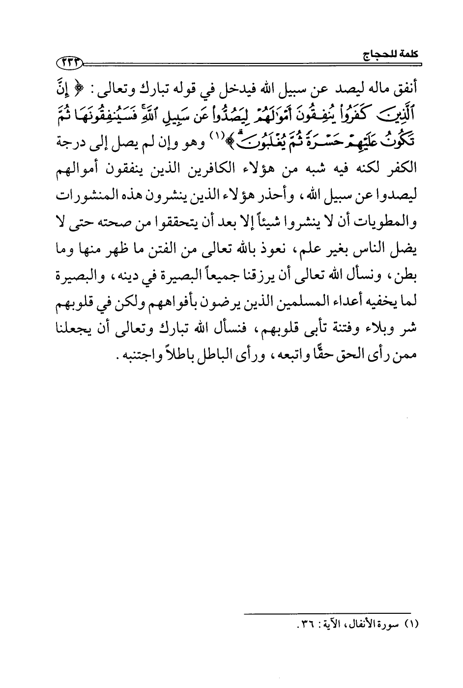 (1) سورة الأنفال، الآية: 36.