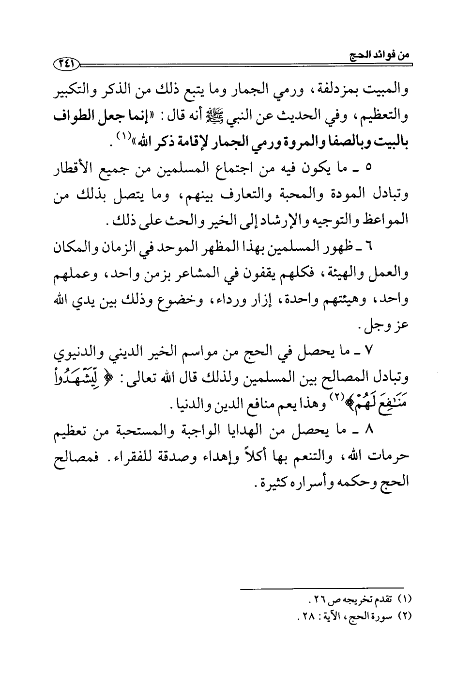 5- ما يكون فيه من اجتماع المسلمين من جميع الأقطار وتبادل المودة والمحبة والتعارف بينهم، وما يتصل بذلك من المواعظ والتوجيه والإرشاد إلى الخير والحث على ذلك.