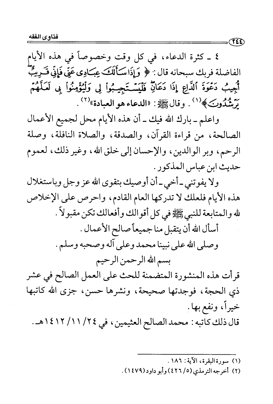 قال ذلك كاتبه: محمد الصالح العثيمين، في 24/11/1412 هـ.