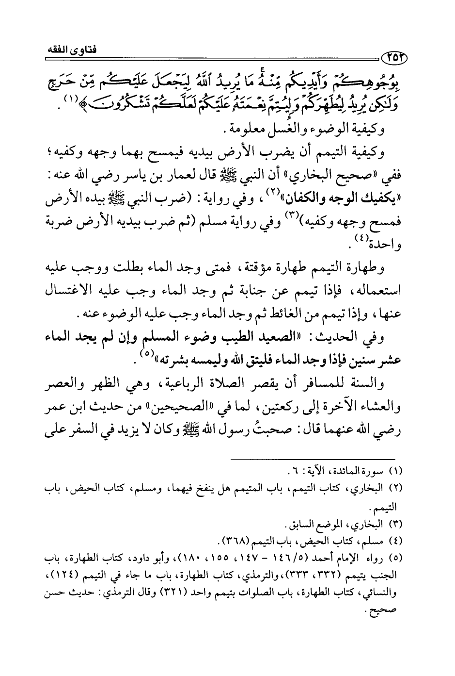 (5) رواه الإمام أحمد (5/146- 147، 155، 180) ، وأبو داود، كتاب الطهارة، باب الجنب يتيمم (332، 333) ، والترمذي، كتاب الطهارة، باب ما جاء في التيمم (124) ، والنسائي، كتاب الطهارة، باب الصلوات بتيمم واحد (321) وقال الترمذي: حديث حسن صحيح.