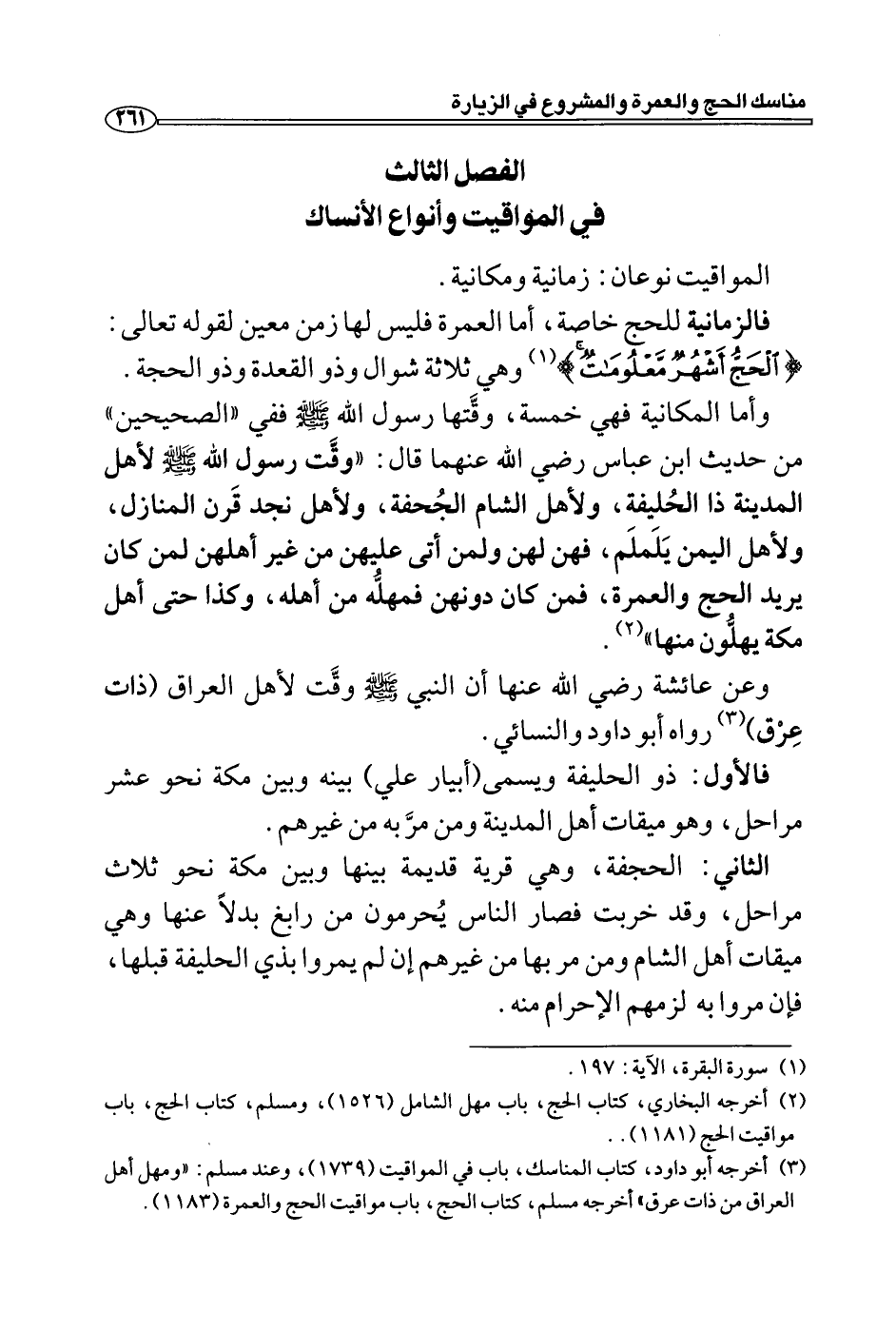 وأما المكانية فهي خمسة، وقَّتها رسول الله - صلى الله عليه وسلم - ففي "الصحيحين " من حديث ابن عباس رضي الله عنهما قال: "وقت رسول الله - صلى الله عليه وسلم - لأهل المدينة ذا الحُليفة، ولأهل الشام الجُحفة، ولأهل نجد قَرن المنازل، ولأهل اليمن يَلَملَم، فهن لهن ولمن أتى عليهن من غير أهلهن لمن كان يريد الحج والعمرة، فمن كان دونهن فمهلُّه من أهله، وكذا حتى أهل
